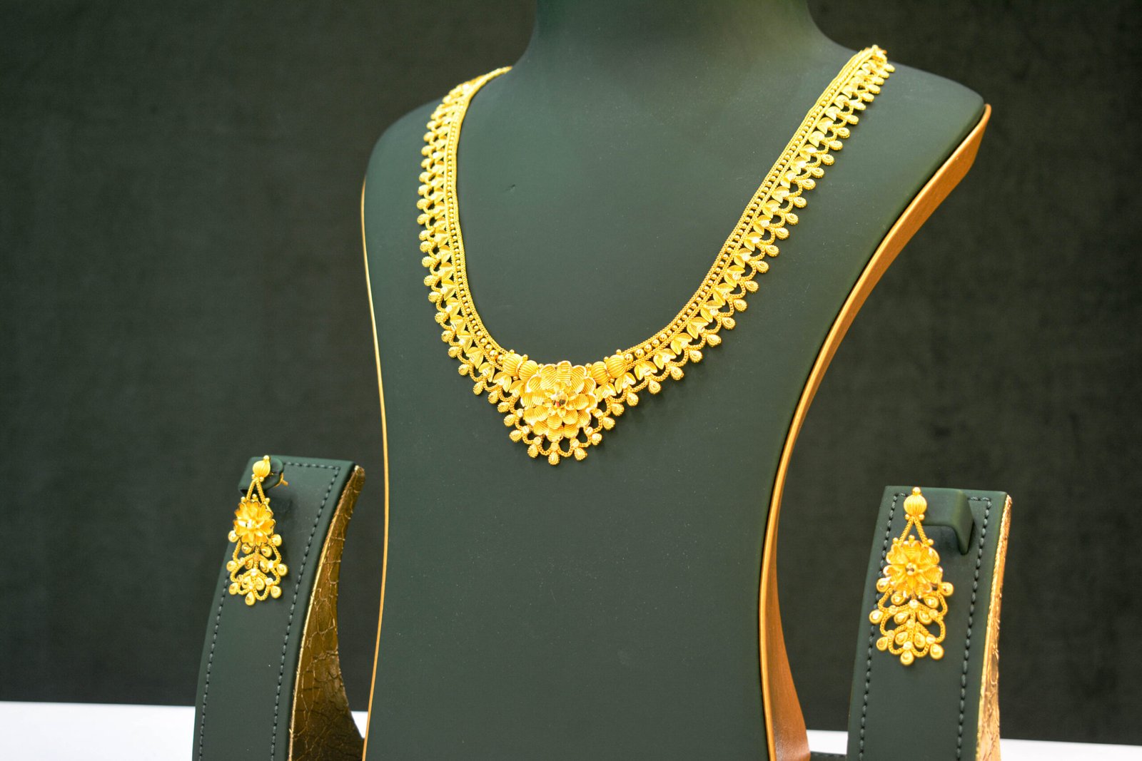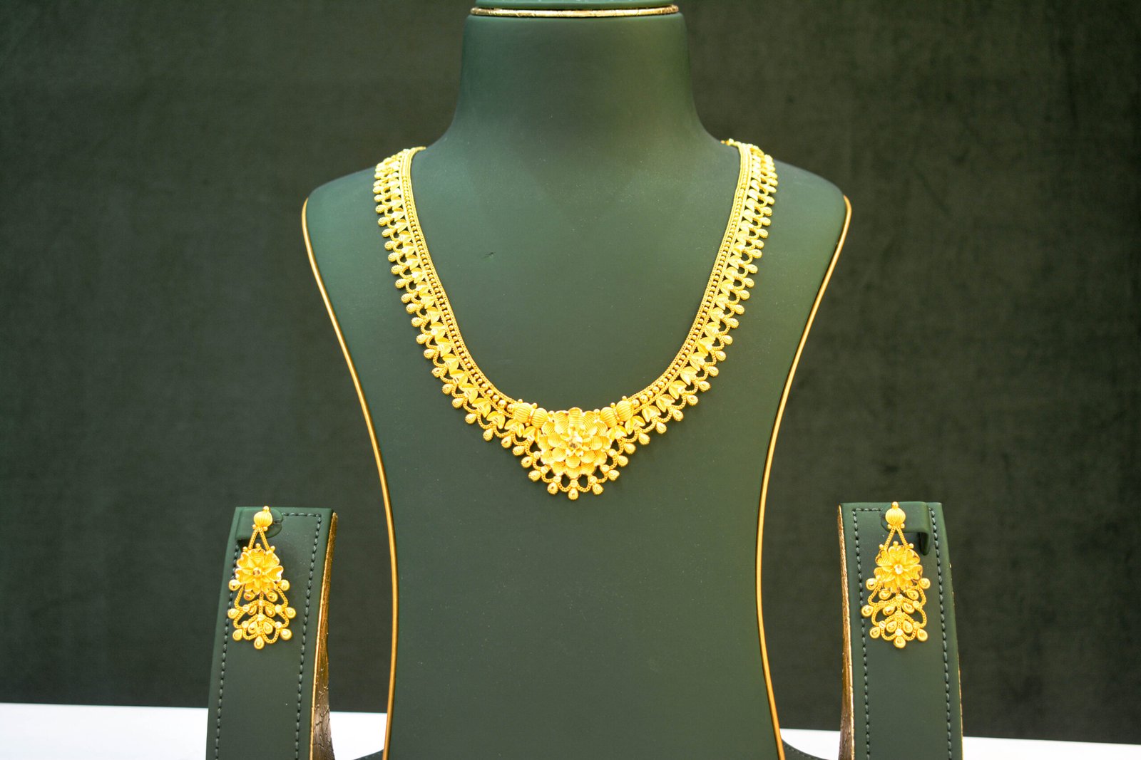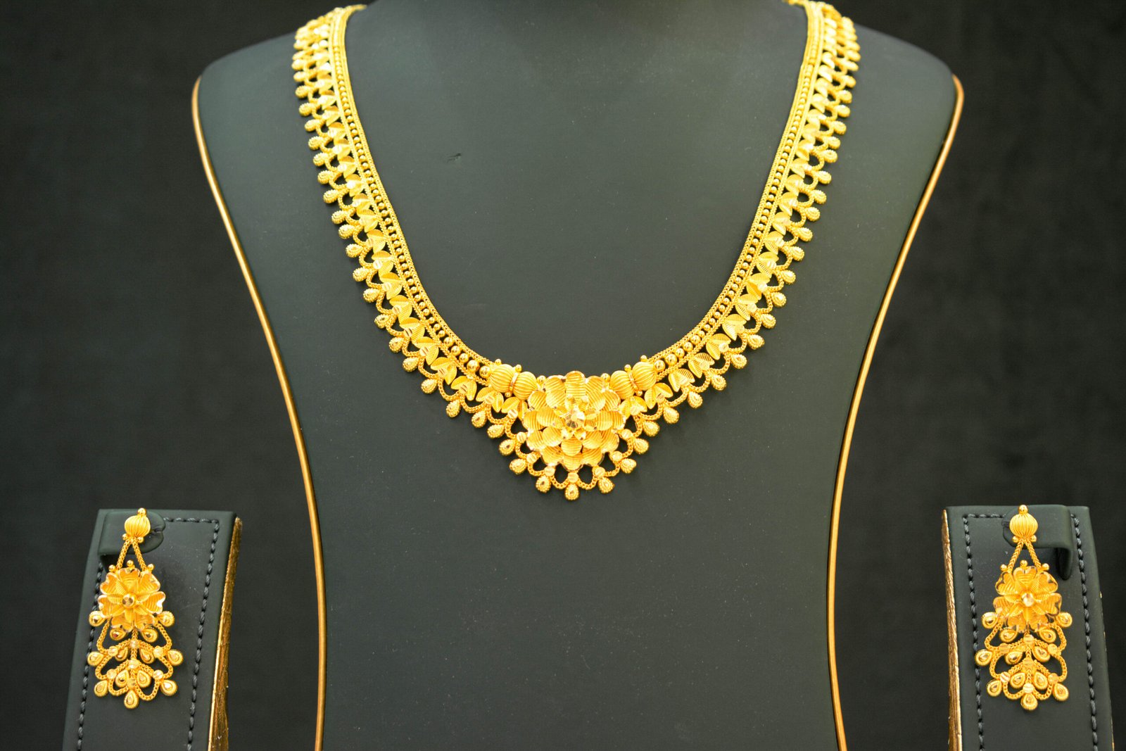 Authentic Coimbatore-crafted long necklace set with earrings, designed for traditional elegance and wedding celebrations.
